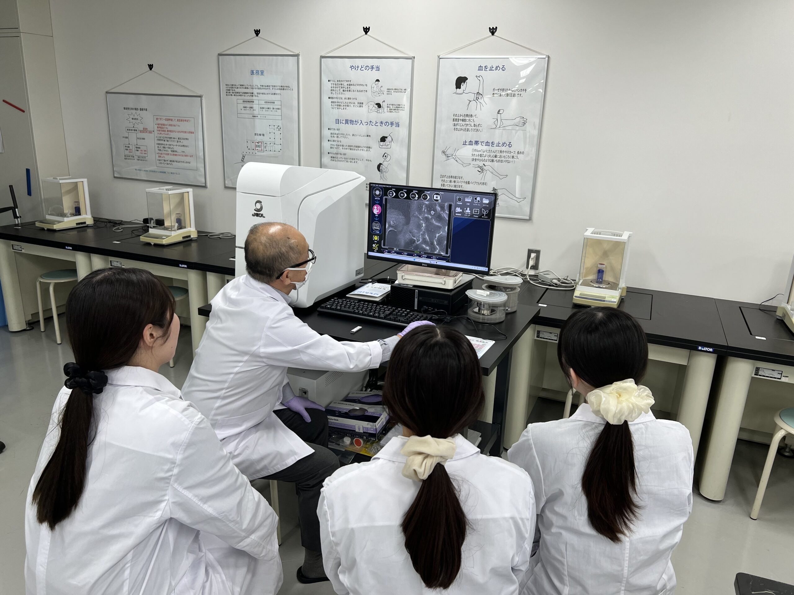 2025年11月3日 / 最終更新日時 : 2025年11月3日 吉田亘 学生の活動 化粧品評価実習を実施しました!化粧品コース3年生の学生実習「化粧品評価実習(松井毅教授担当)」を実施しました!本実習では、紫外線を当てた細胞を走査電子顕微鏡で観察したほか、皮膚や三次元皮膚モデルの切片を染色して状態を詳しく解析しました。